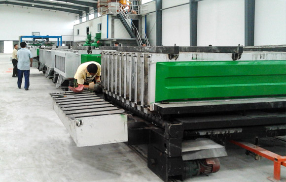M07輕質(zhì)墻板生產(chǎn)線整體采用成組立模法機(jī)組流水工藝,該線使用瑪納多項技術(shù)做支撐,大規(guī)模集成式標(biāo)準(zhǔn)化設(shè)計,自動化程度高,效率提高50%,減少操作人員50%。主要滿足用戶大規(guī)劃、高品質(zhì)、高度機(jī)械自動化生產(chǎn)的需要。